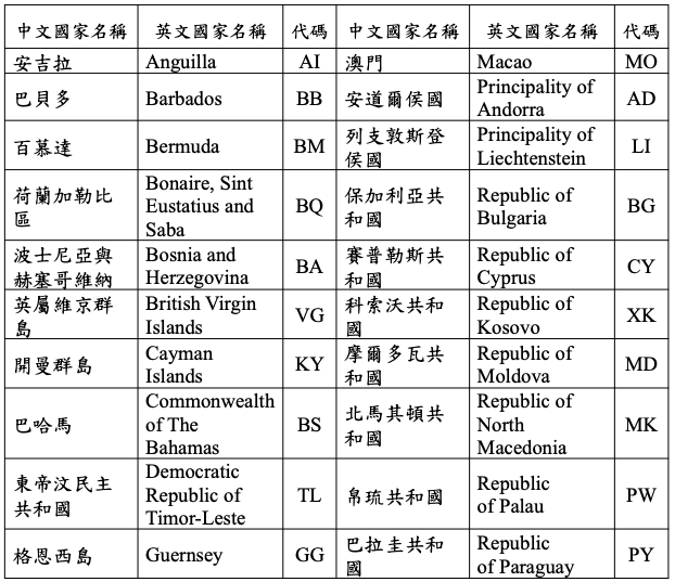 三、本名單僅供參考,各國家或地區是否符合營利事業認列 受控外國企業所得適用辦法第4條及個人計算受控外國企 業所得適用辦法第4條規定情形,應以該國家或地區實際情況認定之。