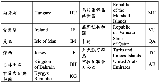 規定,彙整可能適用受控外國企業制度所稱低稅負國家 或地區參考名單如下: