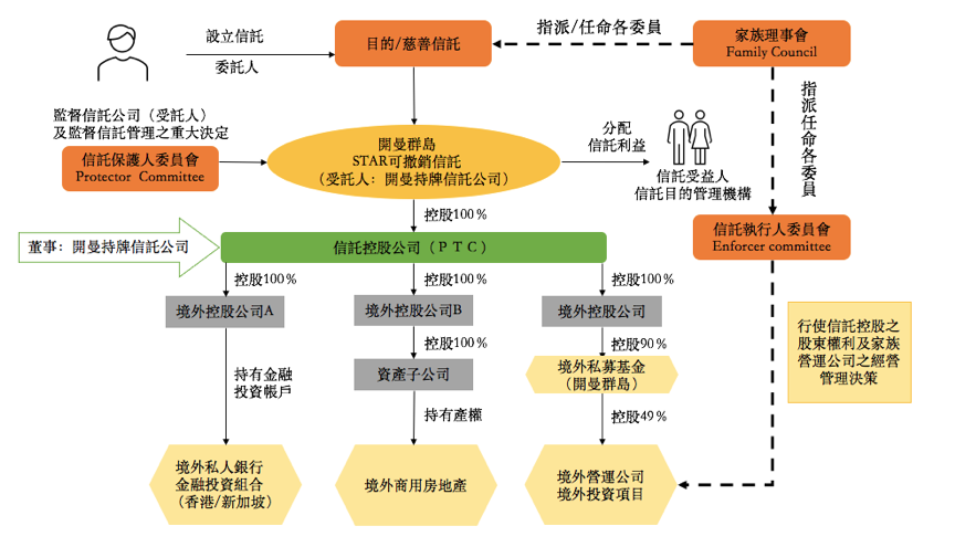 「信託控股公司」的董事即由「開曼持牌信託公司」擔任,以確保信託資產可按照「家族信託」契約的設立目的進行專業信託管理。